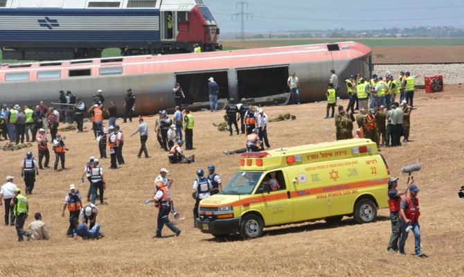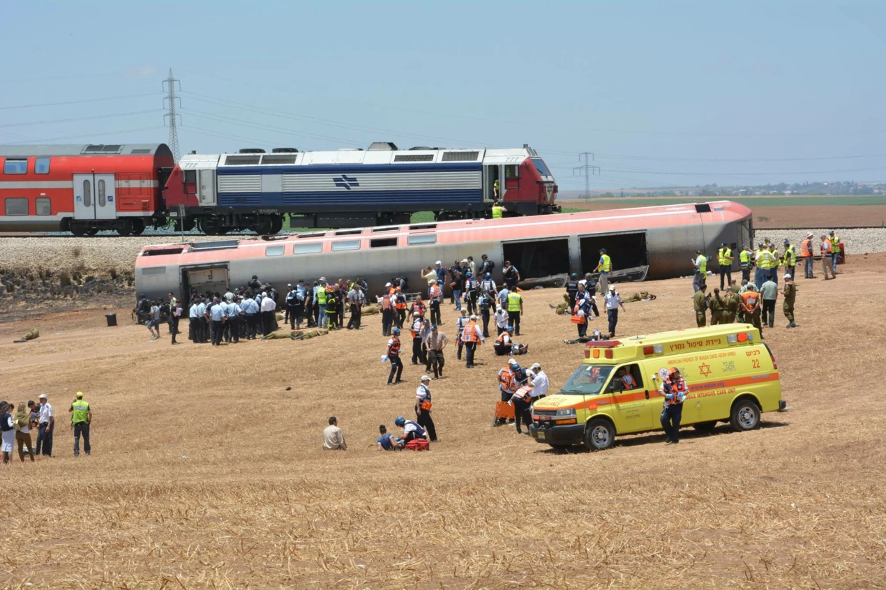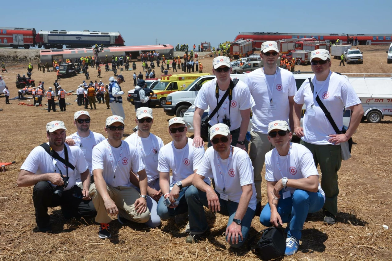 Wracając jednak do dzisiejszego wyjazdu - władze regionu, w którym się znajdujemy (Izrael podzielony jest na 11 rejonów) zadecydowały o przeprowadzeniu symulowanego ataku samobójczego w pociągu. Wybór scenariusza nie jest przypadkowy - ostatnimi czasy, często dochodzi do prób zamachów na ten środek lokomocji. Przed rozpoczęciem działań odbyło się spotkanie, na którym przedstawiono założenia, cele oraz zasady bezpieczeństwa obowiązujące podczas ćwiczeń. Spotkanie poprowadził szef MDA oraz jeden z kierowników późniejszej akcji ratunkowej. Izraelczycy są bardzo dokładni w planowaniu oraz dbaniu o zachowanie środków bezpieczeństwa – omówienie szczegółów całego przedsięwzięcia trwało ponad półtorej godziny. Po zebraniu zostaliśmy przewiezieni na miejsce, które przygotowano do przeprowadzenia symulacji. Na potrzeby akcji przygotowano olbrzymi obszar, który następnie został podzielony na kilka sektorów. Linie kolejowe przetransportowały na miejsce zdarzenia wagon, który następnie został przewrócony, aby upozorować wykolejenie. Oprócz tego przygotowano zaplecze logistyczne, w którym zebrano przedstawicieli wszystkich służb oraz zaproszonych gości. W scenariuszu udział brało 100 poszkodowanych. Niespodzianką był drugi zamachowiec-samobójca, który czekał na przyjazd służb i udawał poszkodowanego - na szczęście procedury obowiązujące przy takich zdarzeniach nie pozwoliły mu na zdetonowanie ładunku.