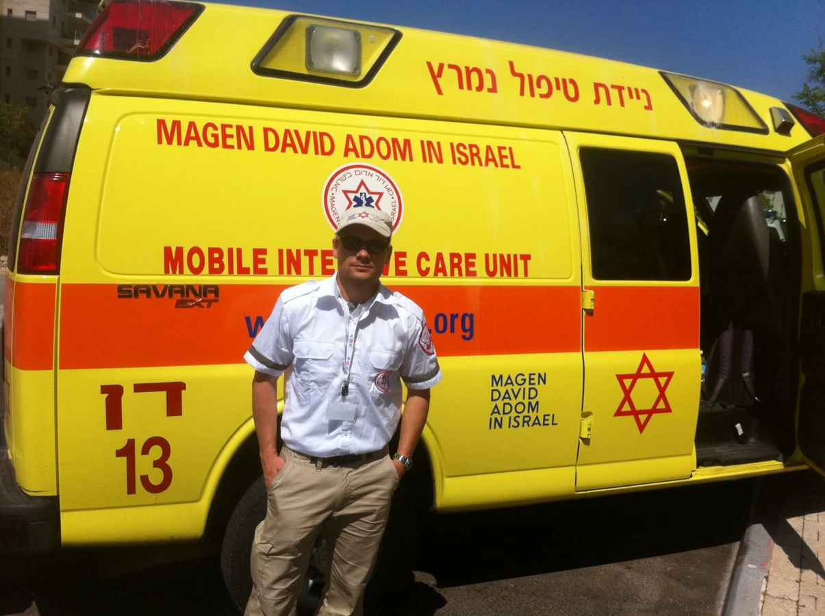 Zacznę może od tego co najbliższe skórze. Mundur, można powiedzieć, ze „very smart outfit”. Biała koszula z pagonami, jednoznaczna identyfikacja z MDA i szacunek, który niesie ze sobą ten znak. Społeczna akceptacja działań ZRM (Zespół Ratownictwa Medycznego), uśmiech na twarzy u przygodnych ludzi, bez złośliwości i agresji. Można powiedzieć „szacunek na dzielnicy”. Pierwsze co się rzuca w oczy to spokojnie, spokojnie... Pierwsze wezwanie: „Hummus, my friend!” - Przecież bez śniadania nie pojedziemy. Wybraliśmy się do najlepszego baru w Tel Awiwie. Zakupiliśmy porcje dla każdego i pojechaliśmy... Na plażę!!! Tak, nie pomyliłem się, plaża. Dlaczego, pytam kolegę po fachu z MDA. Odpowiedź jest prosta – „i tak nas znajdą, mamy GPS, telefony, wszyscy wiedzą gdzie jesteśmy”. Kilka rundek po rejonie i udaliśmy się na podstację - podstację na miarę naszych potrzeb, a nie możliwości. Zainteresowanych odsyłam do obowiązkowej pozycji w polskiej kinematografii, a mianowicie filmu „MIŚ”.